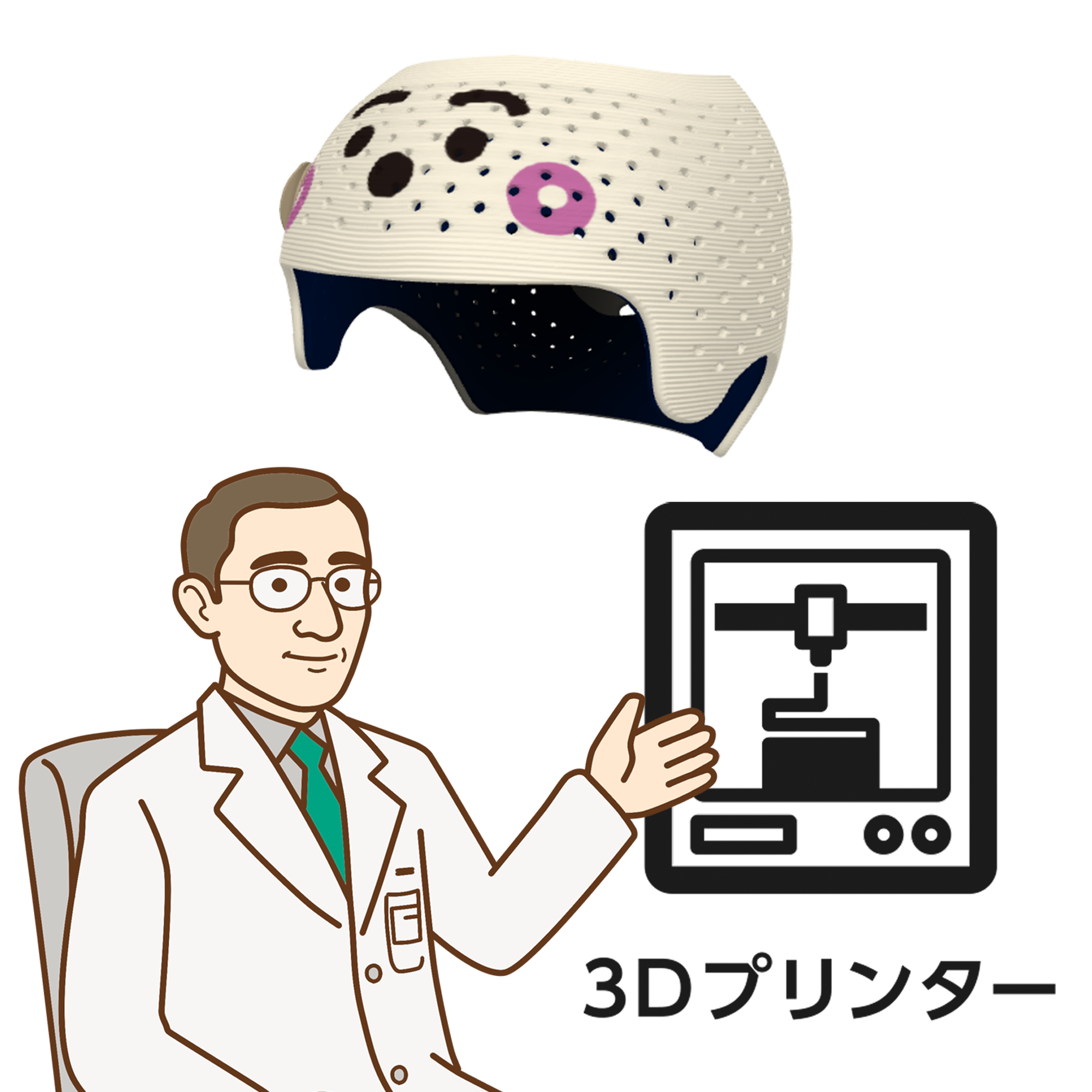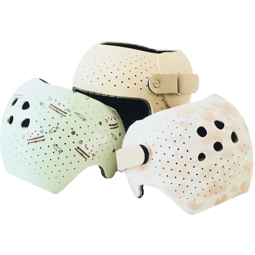 オーダーメイドのヘルメットを使用し、無理のないペースで頭の形を整えていきます。